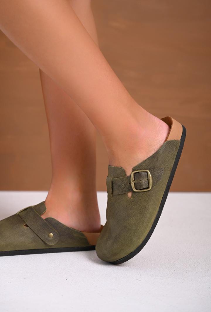 Diseñadas para quienes valoran la comodidad y el estilo atemporal. Estas sandalias tipo zueco están confeccionadas en cuero negro de alta calidad, con una hebilla metálica ajustable que aporta un toque clásico y elegante. La plantilla ergonómica garantiza confort durante todo el día, mientras que su diseño versátil combina fácilmente con jeans, faldas o shorts para un look casual y moderno.